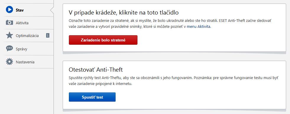 Pre správne fungovanie tejto funkcie, si musíte funkciu Anti-Theft zapnúť v aplikácii na vašom zariadení. Aby ste mohli so zariadením lepšie komunikovať, budete potrebovať aj účet na my.eset.com. Prostredníctvom tohto účtu môžete v prípade straty alebo ukradnutia, označiť vaše zariadenie za stratené. Fungovanie tejto funkcie si môžete dokonca overiť aj testom.