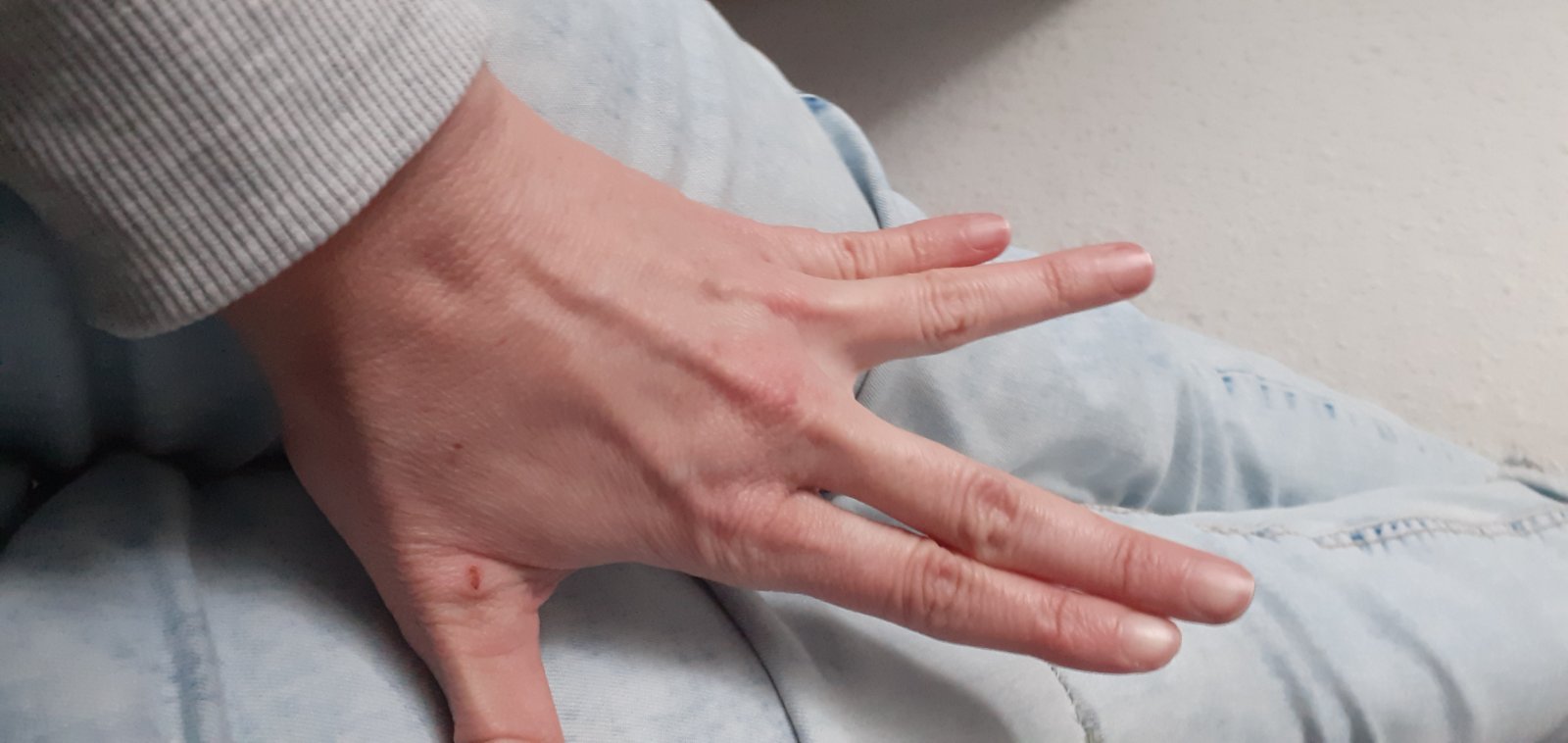 No ja aj rolujem jazyk, zdvihnem obocko, prepletiem prsty aj ten krk natiahnem, chlpky mam navrchu prstov. Palec ohnem iba malinko.
