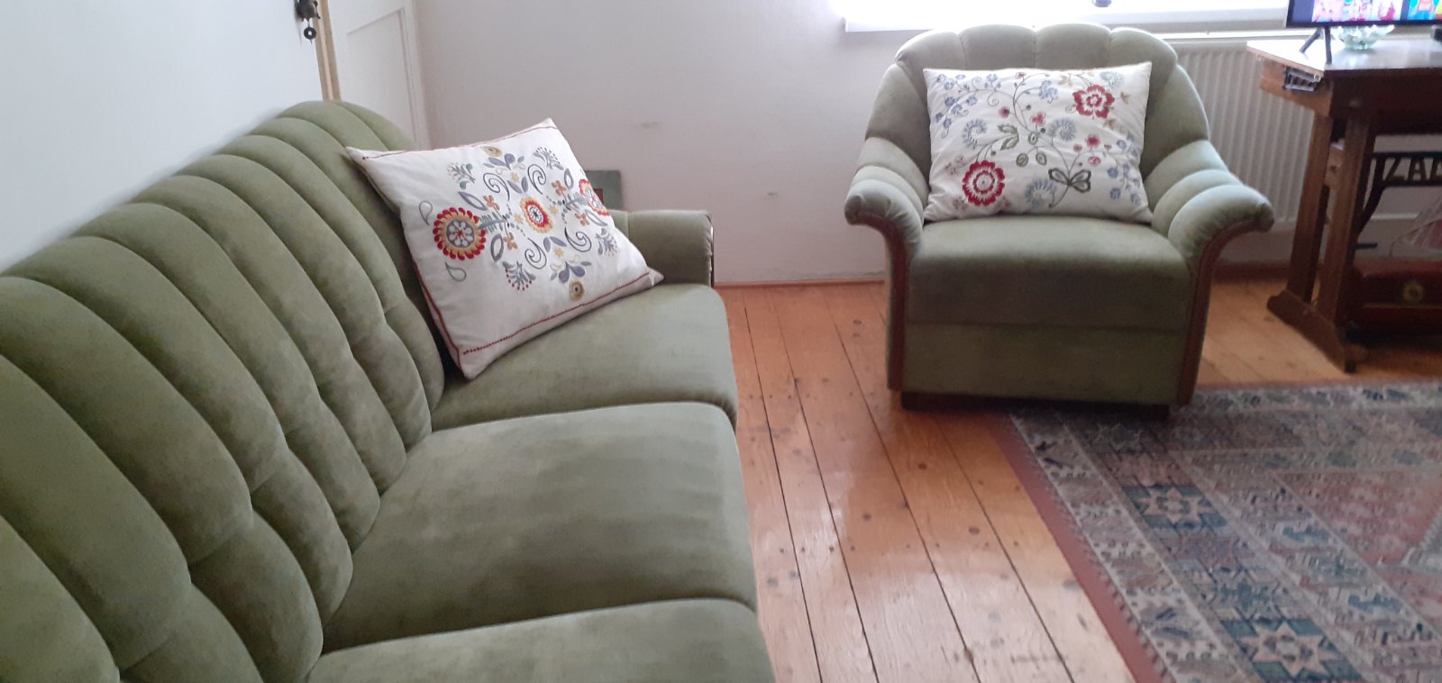 Ja tu mam 52r nabytok kupeny po svadbe siroke kreslo je este jedno a gauc moje vnucatka stale nalepene na mne aj trindrobce sa tam zmestia dcera /syn fotia
