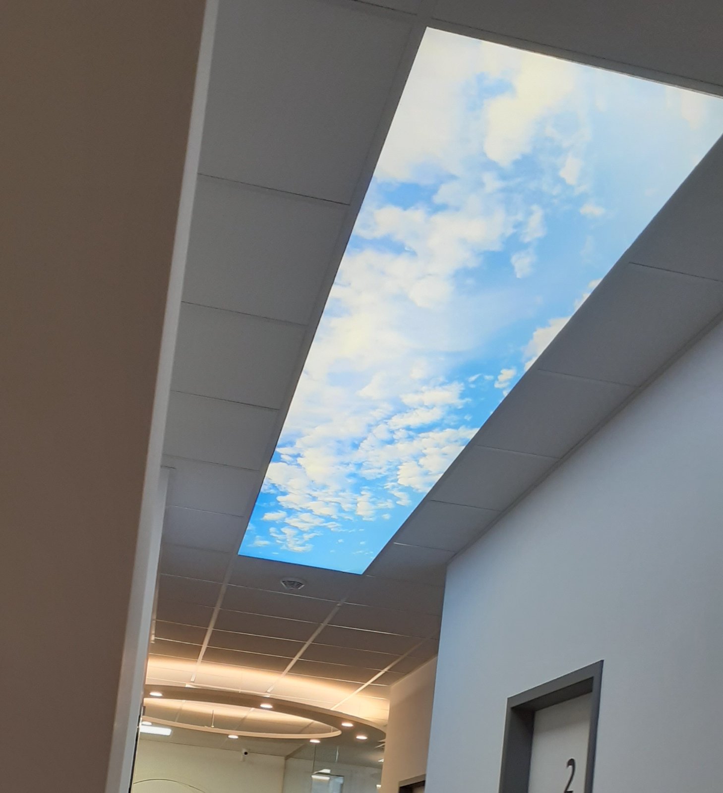 To je napinaci strop s podsvietenim si myslim. Je to krasne,upokojujuce😊