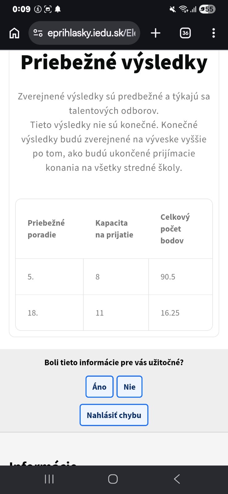 Výsledky prijímačiek na talentové školy budú kedy prosím? Ďakujem