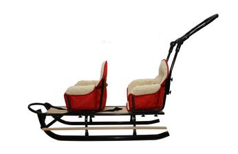 Nová kolekcia! Detské sánky pre dve deti s operadlom, madlom a vlnenými podložkami.