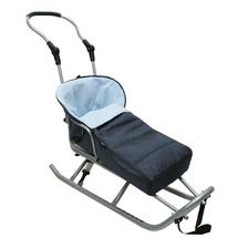 Detské sánky s operadlom, madlom a fusakom majú špeciálne odpruženie (patentované tlmiče), pevnú oceľovú konštrukciu a madlo ktoré možno výškovo regulovať.