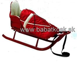 Pevné kovové sánky s praktickou polohovateľnou rukoväťou a fusakom z ovčej vlny.