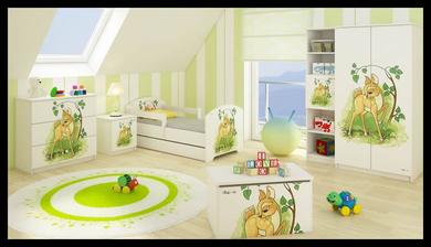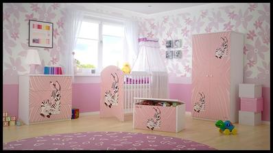 Skriňa je zhotovená z kvalitnej MDF dosky. Zakúpením komody, skrine a detskej postielky alebo postele, truhlici na hracky, nočnému stolíku, poličke vytvoríte Vášmu dieťaťu jedinečnú detskú izbu. Skriňa obsahuje závesnú tyč na vešiaky a poličku.