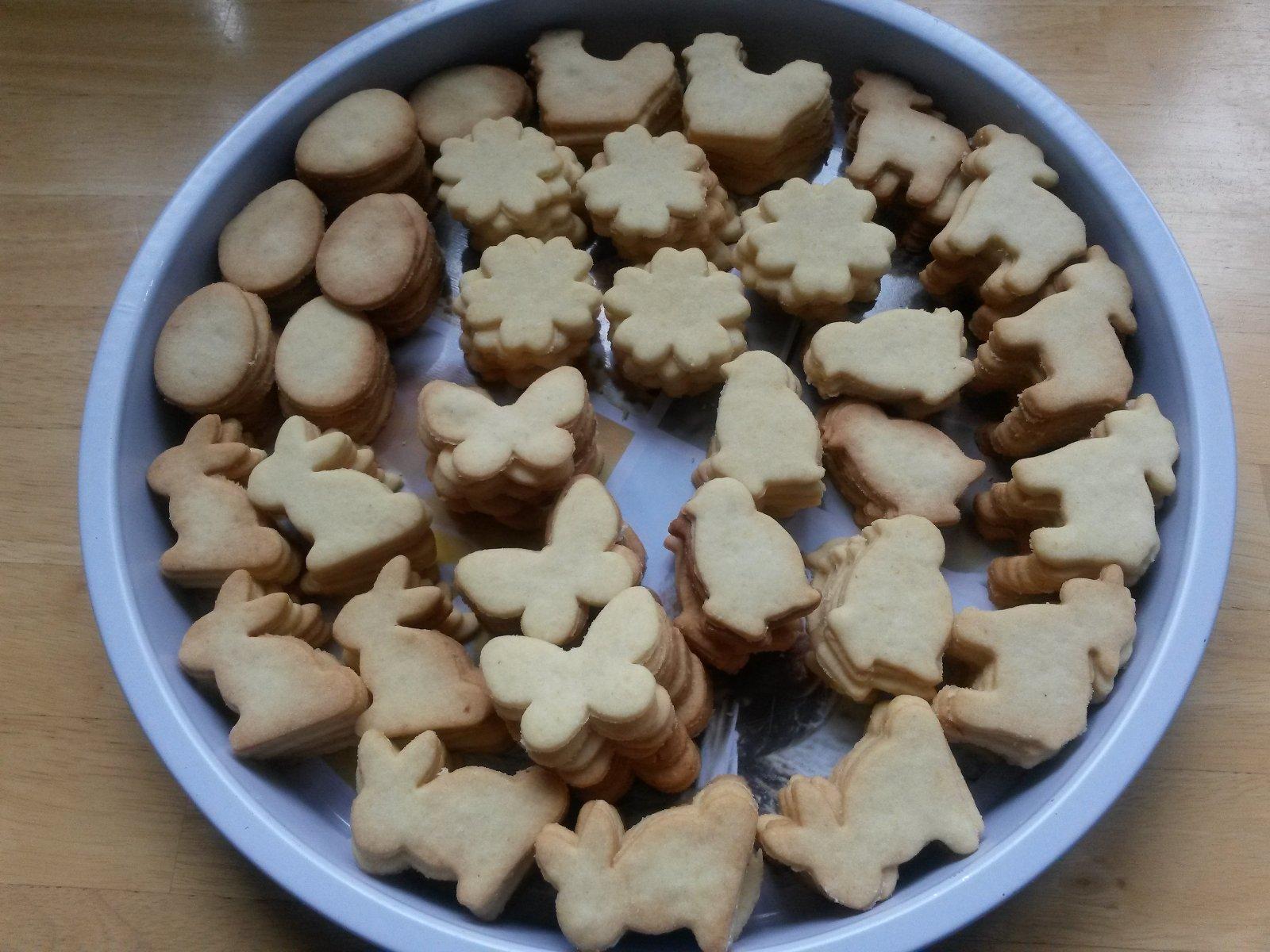 210g hladkej múky,140g masla-palmarin,70g pr.cukor,1 vanilka,2 žltky,kôra z 1 citrona-môže a nemusí sa pridáť aj šťava z citrona----všetky suroviny spracovať,necháť hodinku odlezať v chladničke a potom už len rozvaľkať a báviť sa z vykrajovaním rôzných vzorov,pečieme pri teplote 180 stupnov takých 5-6 minút treba si to sledovať🙂