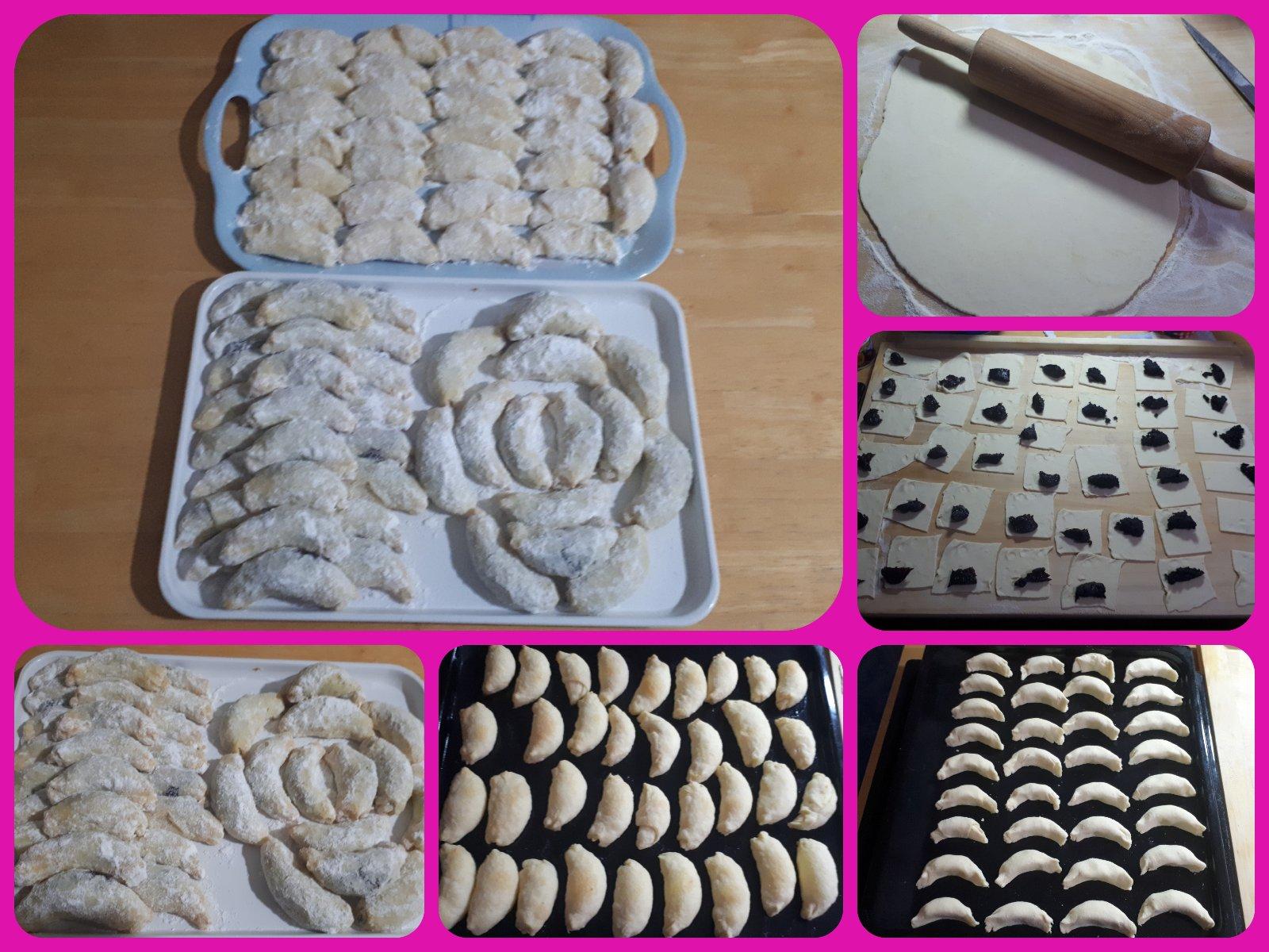 Spracovať cesto a nechať v chladničke cez noc alebo aspoň 4 hodinky,rozvaľkáme,pokrajáme na štvorce ,plníme lekvárom -najlepší je klasicky slivkový,zrolujeme do tvaru rohlička,ukladáme na suchy plech-netreba mastiť a pečieme do zlatista na 180 stupňov,po upečení ešte teple obaľujeme v praškovom cukre zmiešanom s vanilkou,sú prúdko jedle 🙂🙂