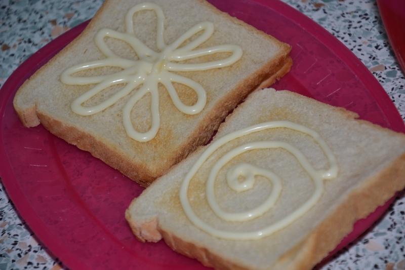 nasej sofinke staci takto malicko.. aby mala z ranajok radost.... :* hrianka so syrom bambino..