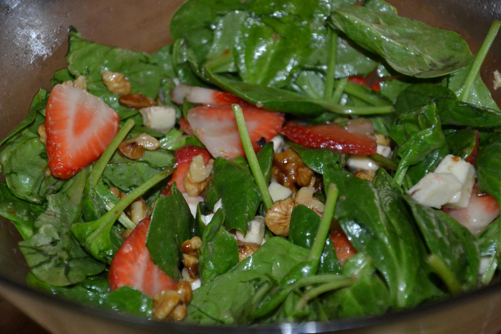 @katarinamaj zlatik.. ten recept bol asi dva tyzdne dozadu v Tesco letaku.. umyjes si spenatove listy, nakrajas jahody, pridas stavu z jedneho citrona, na panvici som rozpustila 1PL hnedeho cukru, ked sa rozpustil.. pridala som 1PL masla, do tej zmesi som pridala orechy.. mala som vlasske.ale kludne by som si dala radsej kesu alebo pekanove 🙂... to v tom rozpustenom karameli obalis.. nechas vychladnut.. posekas..alebo nalames.. do salatu... pridas este 1PL medu.. premiesas.. a mnaaam.. .)....... snad som na nic nezabudla......