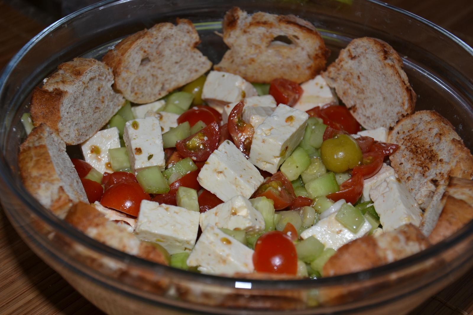 @zuzanka21 zuzka, to je len grecky salat 🙂 uhorky, paradajky(ja davam cherry), olivy, biely slany syr feta, olivovy olej, balzamico, sol, korenie, korenie na salat :=) hotovooo... premiesat.. dat do chladu...... a mozte jest...
