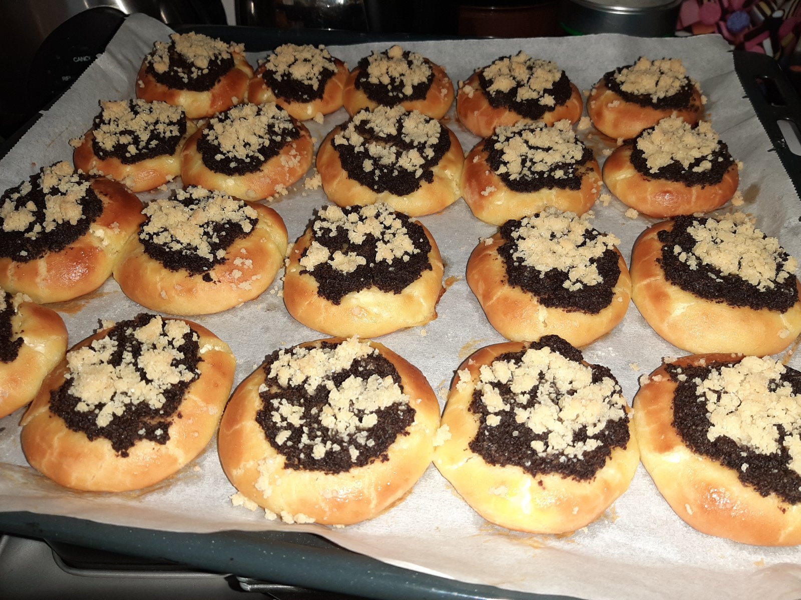 No a tentokrát predstavujem chutné moravské koláčiky,kde sa cesto nerozdeľuje,ale sa z neho priebežne odkrajuje a robia sa buchtičky,ktoré plním tvarohom a navrch zvyknem dávať mak so slivkovým lekvárom a mrveničkou. Cesto potieram pred pečením rozšľahaným vajíčkom a pečiem pri 180 stupňoch,kým nechytia koláčiky krásnu zlatistú farbu a nerozvoňajú celú domácnosť❤️