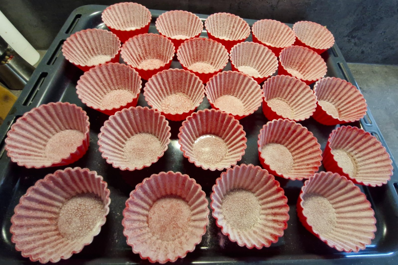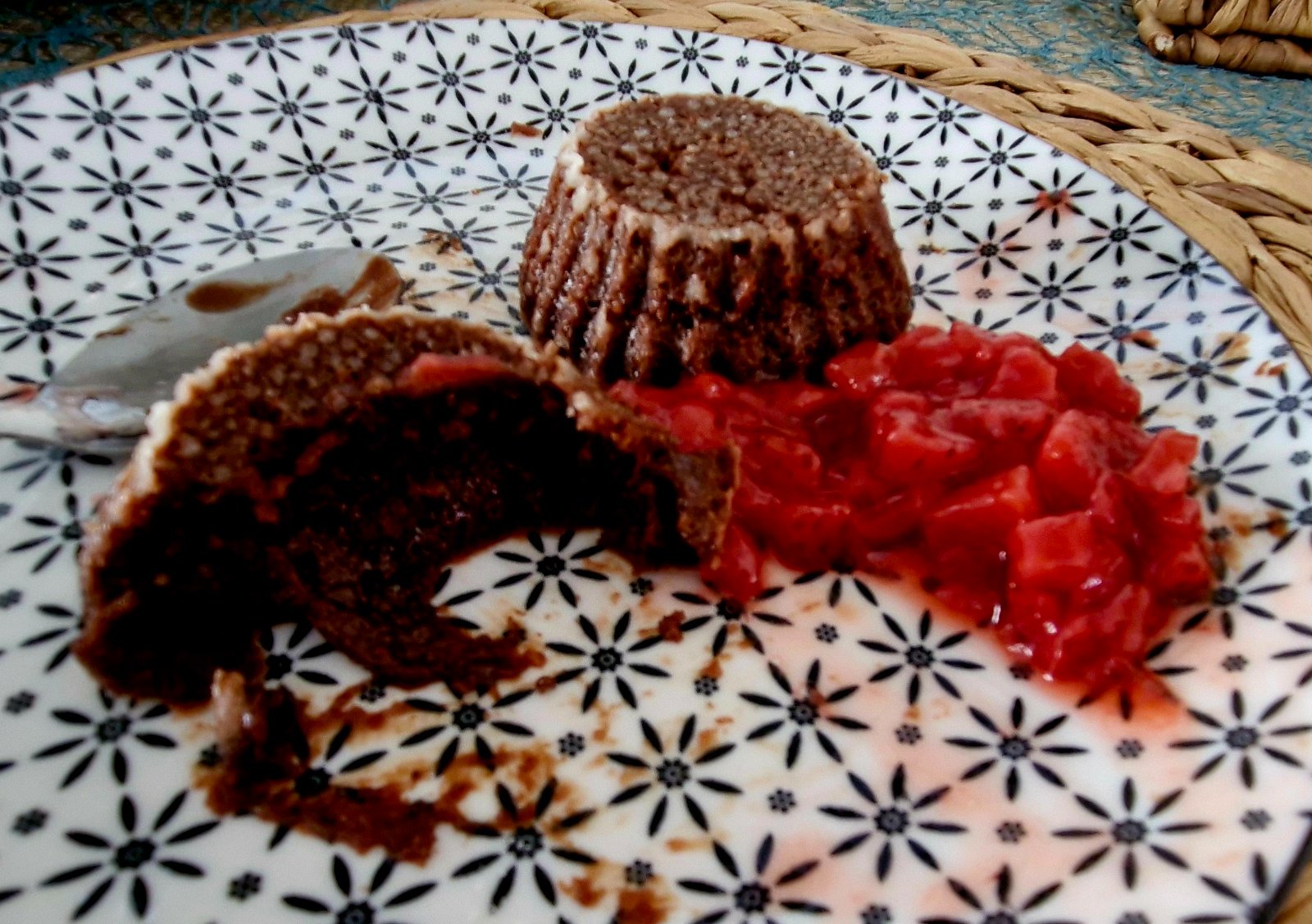 Vajcia + žĺtky + cukor+vanilkový cukor+škoricu+citrónovú kôru vyšľahám do peny. Potom pridáme rozpustenú čokoládu s maslom a múku. Formičky (vymazané a vysypané múkou), alebo silikónové na maffiny (netreba vymazávať), naplníme do 2/3 a pečieme pri teplote 180 stupňov 12-15 minút alebo pri teplote 200 stupňov 10 minút, vyskúšajte,ktorý vám viac vyhovuje. Treba si odsledovať (hotový by mal byť pri vytiahnutí z rúry trasľavý). Prípadne najprv upiecť len jeden a podľa neho načasovať pečenie.