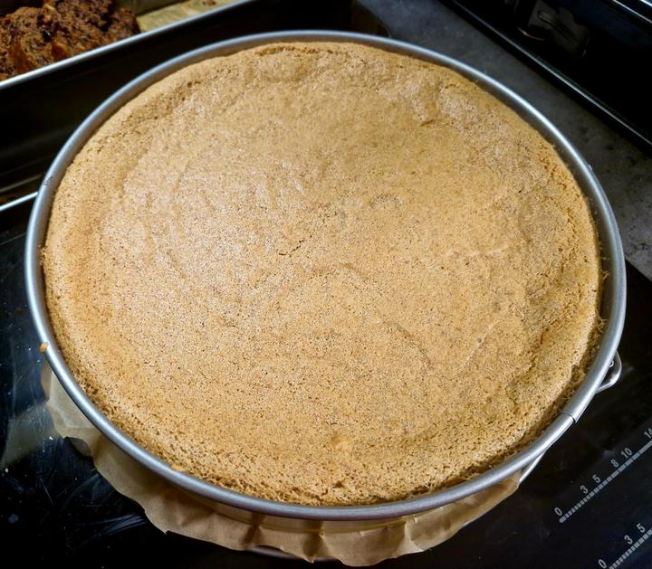 Vajcia rozdelíme: z bielkov vyšľaháme tuhý sneh,žĺtka vyšľaháme spolu s gaštanovým pyré,do tejto masy jemne vmiešame sneh z bielkov. Dáme piecť do rúry predhriatej na 180stupňov,teplotu znížime na 160stupňov a pečieme cca 45minút,pred vytiahnutím z rúry treba vyskúšať,či sa nelepí na špajlu,ak áno,ešte dopečieme.