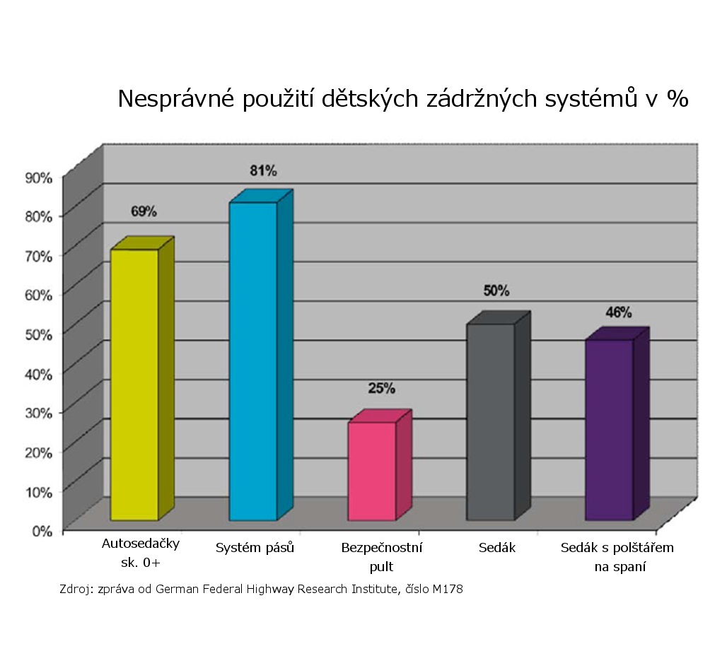 Nedávný průzkum renomovaného španělského automobilového clubu RACE prokázal, že děti se často samy vyvlékají ze systému pásů, především v autosedačkách skupiny I. Byl to případ 43% všech odpovědí.
