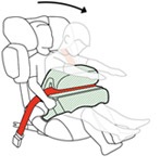 Dítěti, které nepoužívá systém pásů správně, hrozí riziko nárazu do jiných částí vozidla, jelikož hrudník dítěte není zajištěn. Během nehody zůstává autosedačka pevně zajištěna ve vozidle a systém pásů je uzamčen ve sponě. Podle naměřených hodnot je pravděpodobnost vážných zranění po nehodě velmi vysoká.