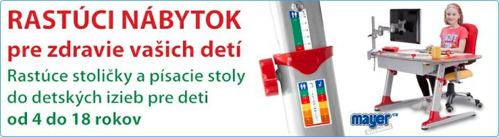 Rastúce stoličky a rastúce písacie stoly do detských izieb sú určené pre deti od 4 do 18 rokov. Pre deti v školskom veku je veľmi dôležitá ergonómia sedenia a dostatočná veľkosť, výška a správny sklon stola. Pri správnom sedení majú deti z práce väčšiu radosť a zábavu. Stoly vyrába nemecká firma MAYER a poskytuje 5 ročnú záruku!