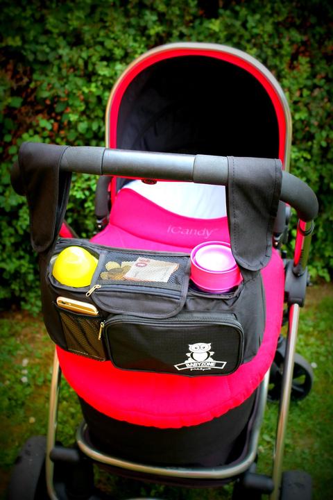 - Priestranný BabyZone organizér je dizajnovaný pre každodenné používanie, kde všetky Vaše drobnosti máte po ruke (2x tepelno-izolačný držiak na pohár/fľašu, vrecko na kľúče, mobil, priestranné vrecko na plienky, občerstvenie a pod.)