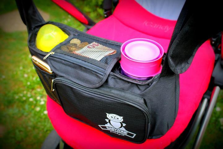 - Priestranný BabyZone organizér je dizajnovaný pre každodenné používanie, kde všetky Vaše drobnosti máte po ruke (2x tepelno-izolačný držiak na pohár/fľašu, vrecko na kľúče, mobil, priestranné vrecko na plienky, občerstvenie a pod.)