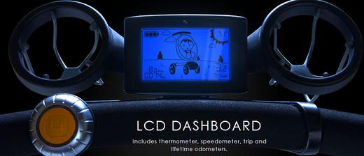 Digitálny displej ukazuje vonkajšiu teplotu a informácie o trvaní a dĺžke vychádzky.