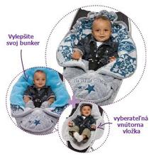 Fusak Bunker je neuvěřitelně variabilní. Je natolik prostorný, že je dostatečně pohodlný pro děti do 3 let věku, přitom jej můžete přizpůsobit i nejmenším dětem. Dítě do fusaku snadno zabalíte pomocí suchých zipů. Kolem hlavičky dítěte můžete fusak stáhnout pomocí šňůrky, jejíž konce poté schováte do kapsiček na suchý zip.
