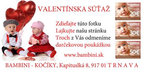 !!!!!!!! UPOZORNENIE !!!!!!! Z dôvodu marketingových pravidiel FACEBOOKU sme nútení Valentínsku súťaž ukončiť už DNES !!! Súťaž ukončíme o 18.00 hod a výhercov zverejníme o 18.30 hod. Ďakujem pekne za pochopenie. BAMBINI.