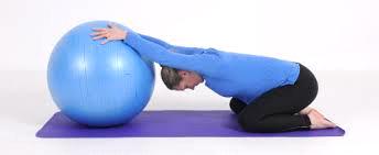 7, oddych a relax na zaver - klakneme si na siroko, tak, aby ste si netlacili na brusko, ruky ulozime na loptu a jemne do nej zatlacame dlane tak, aby ste si uvolnili chrbat, ponatahovali hrudne svaly a zrelaxovali si krize. V polohe zostante podla potreby 🙂.