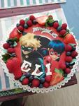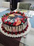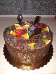 Po naplnení bola kraasna... Len som ju najprv natrela aj po krajoch a az potom som si ju dala na tacku a takto to dopadlo😪neprelozila som si ju najprv... No je to pre priatelovu malu na oslavu a chcela by som to este nejak doladiť respektive ked urobim plnku nebude to drzat? Neviem ci tam dat fondan alebo len cokoladou potriet a nato len ovocie...