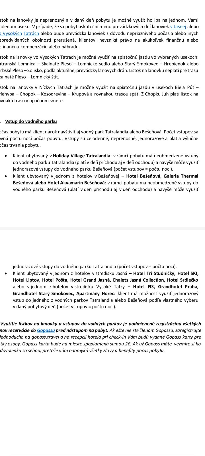 A vstupy na lanovky a aquapark vam nabijú na kartu podľa počtu ľudí v rezervácii a počtu nocí