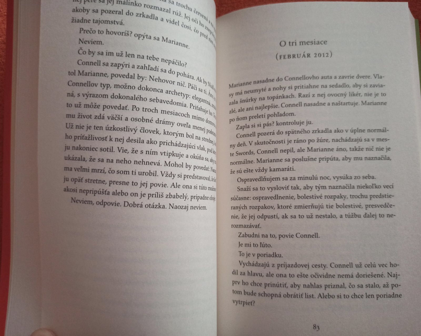 Connell a Marianne pochádzajú z jedného malého mestečka na západe Írska, no zdá sa, že tam sa podobnosť medzi nimi končí. Connell je v škole obľúbený, zatiaľ čo Marianne je samotárka. Marianne je z bohatej rodiny, Connel vyrastal bez otca a jeho matka je upratovačka. Keď však jedného dňa nadviažu rozhovor – síce trápny, no strhujúci – spustia lavínu, ktorá navždy zmení ich životy.