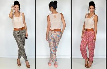Květiny leopard bavlněne harémky alladinky 8 € S/M-L/XL