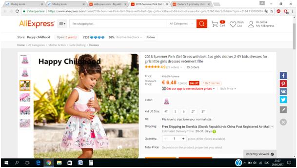 Objednala som súpravu pre dcérku z Bonprix za 11,99,- plus poštovné 2,99,- Eur. Krátko na to susedka kúpila z Aliexpress tú istú súpravu, to isté prevedenie a materiál za 4,56,- Eur bez poštovného poplatku - free shipping. Ako dôkaz fotky, že ide o tú istú súpravu. Úplne som ostala v šoku a napísala do Bonprix: