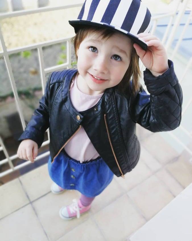 Volila som veľkosť 104 a 92, pretože Alžbetka je zase útlejšie dievčatko. Vďaka gumičke jej suknička nepadá. A navyše milujú „pózovanie“ s rukami vo vreckách. Prezradíme vám tajomstvo. Pri spoločnom fotení si do nich schovali gumené cukríky, ktorými som ich tak trochu podplatila, aby sa na chvíľočku zastavili.