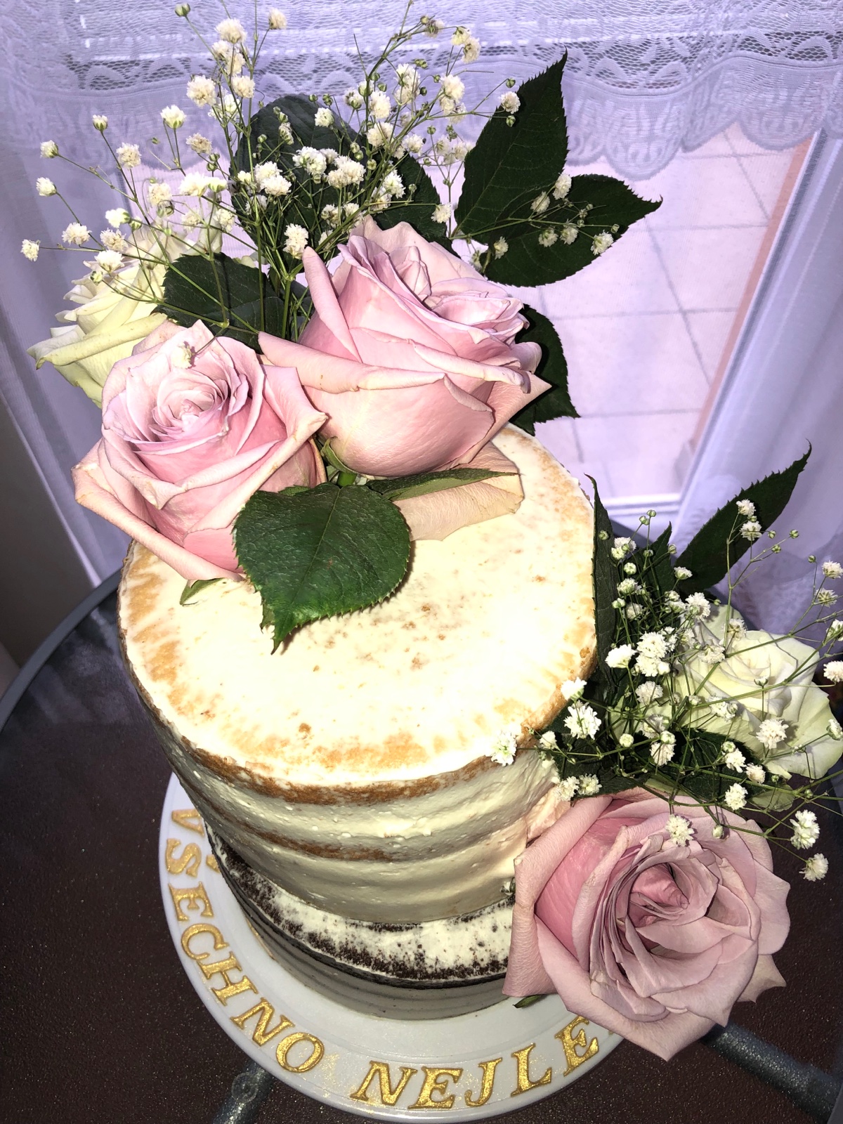Po veľmi dlhej době znovu.. spodní diel čokoládový korpus + borůvkovy krém, vrchní diel piškotovy korpus + Rafaelo krém