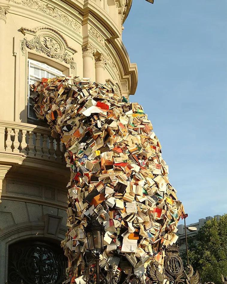 Vodopád s približne 5000 knihami „tečie“ z Casa de America v Madride