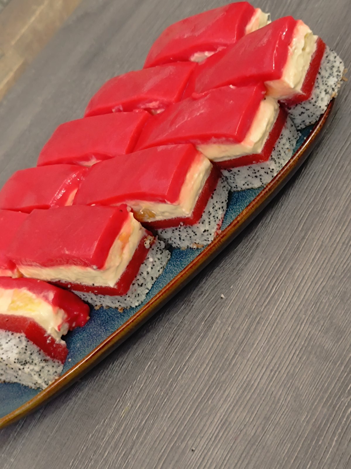 @manus19 taký trošku vymyslený....spojila som tri receptyNa korpus z jedného receptu,na želé z druhého receptu a na vanilkový mousse z tretieho receptu 😀
