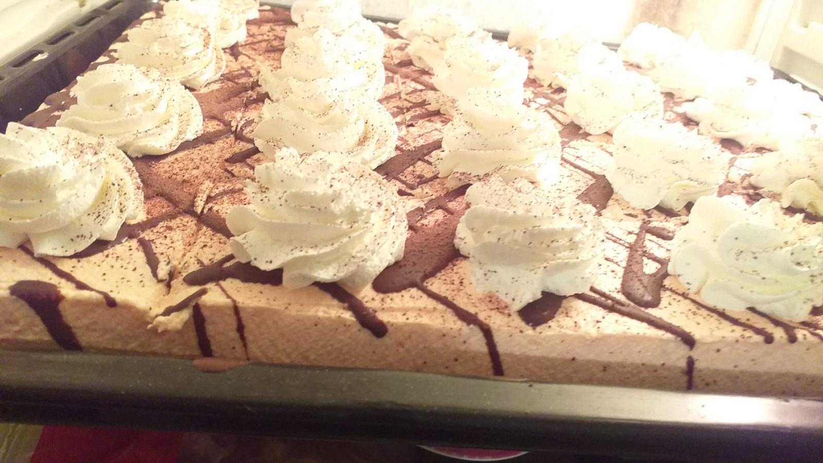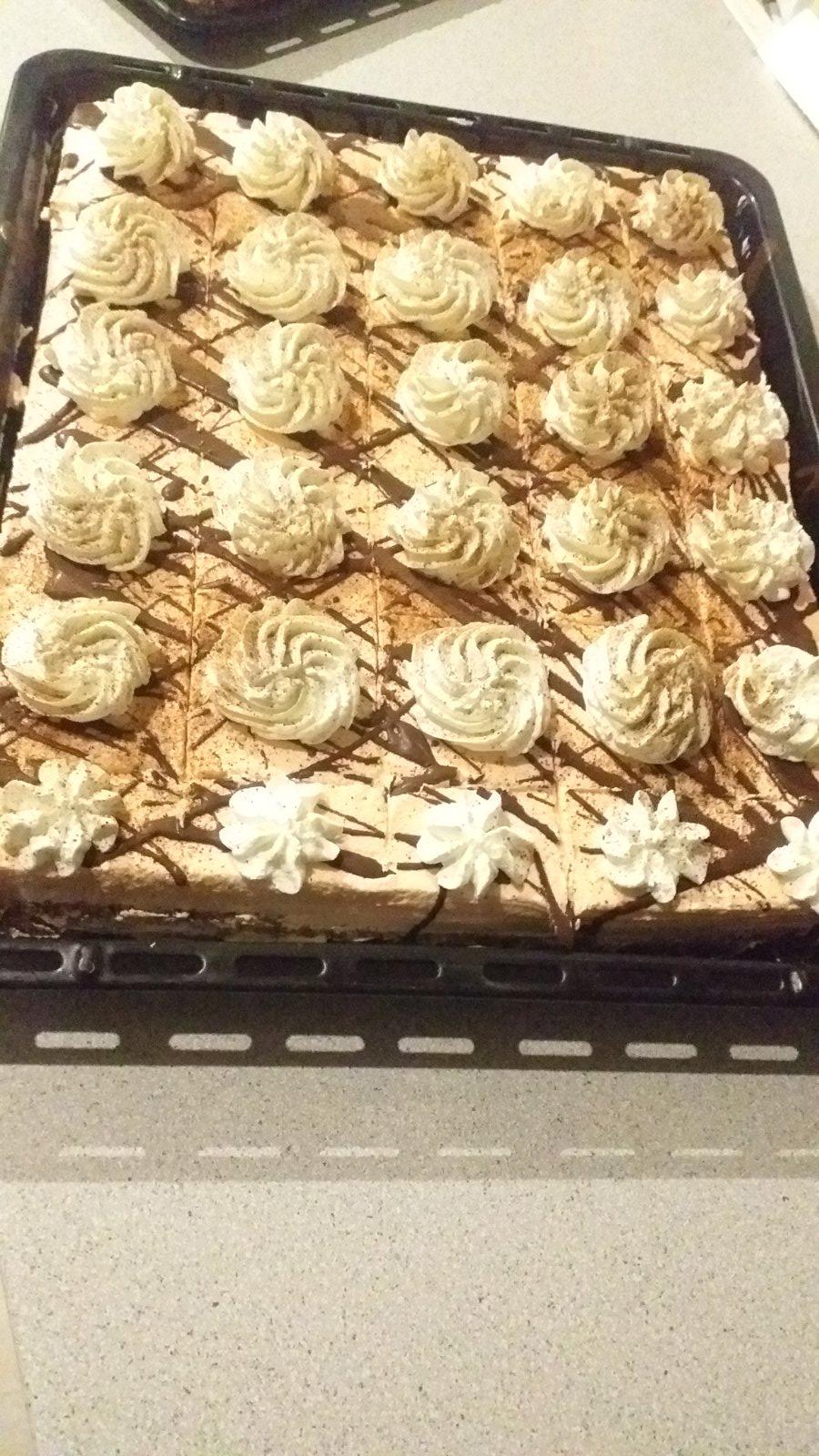 Kakaový korpus,vanilkovo tvarohovo smotanovo slahackovy ružový krém (dlhy nazov však?)+šľahačka