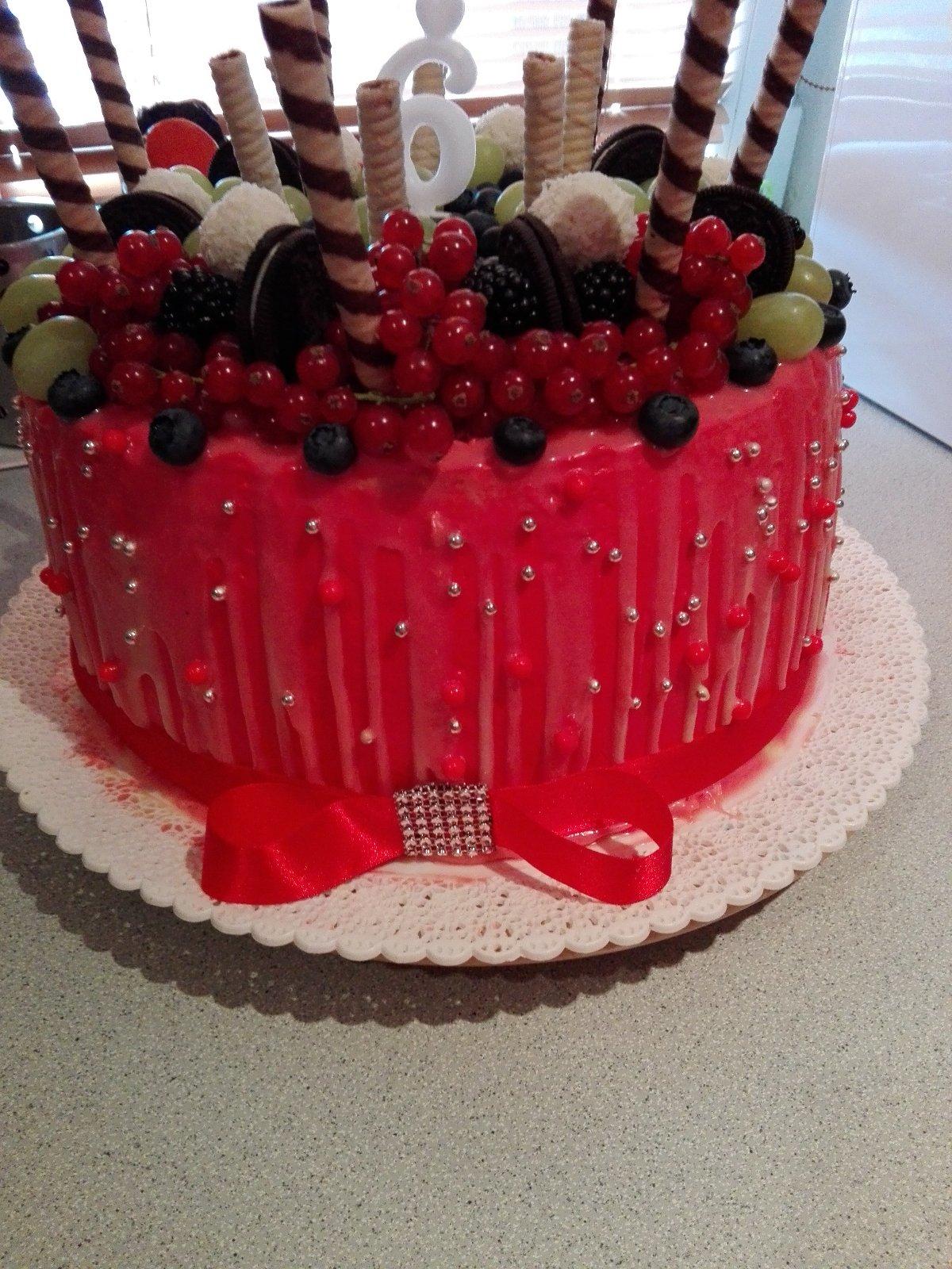 Práve dokončenáVanilkové korpusy,jogurtovy krém vanilkovy,mix mrazené ovocie a obtreta je swiss marengue buttercream (skúšala som ho po prvý raz ale asi aj posledný😞😞😞 nerobilo sa mi s ním dobré )