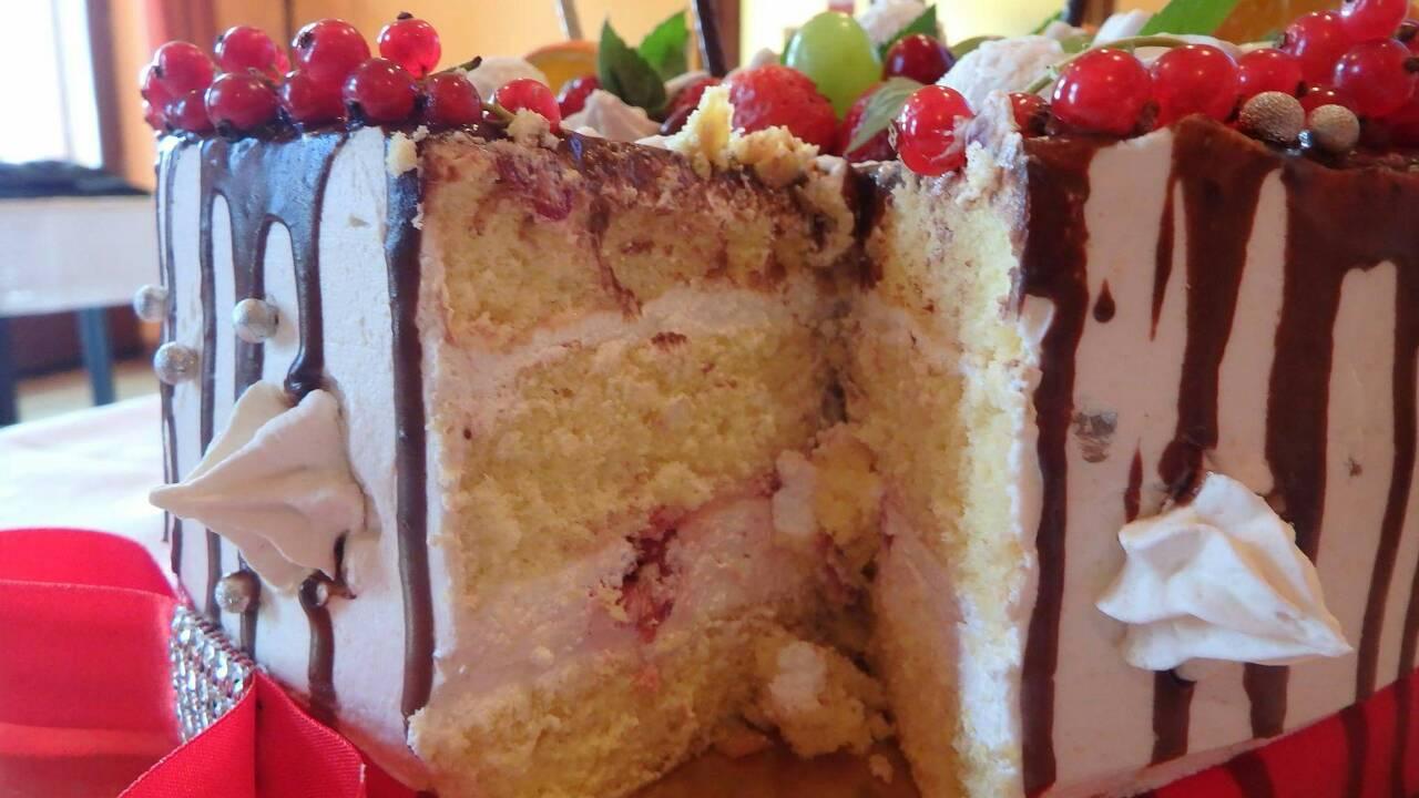 Pre triedu môjho syna na rozluckovuJedna vanilkovy korpus ,pribinacik krém a jahodyDruhá kakaovy korpus,čokoládový krém ,visne