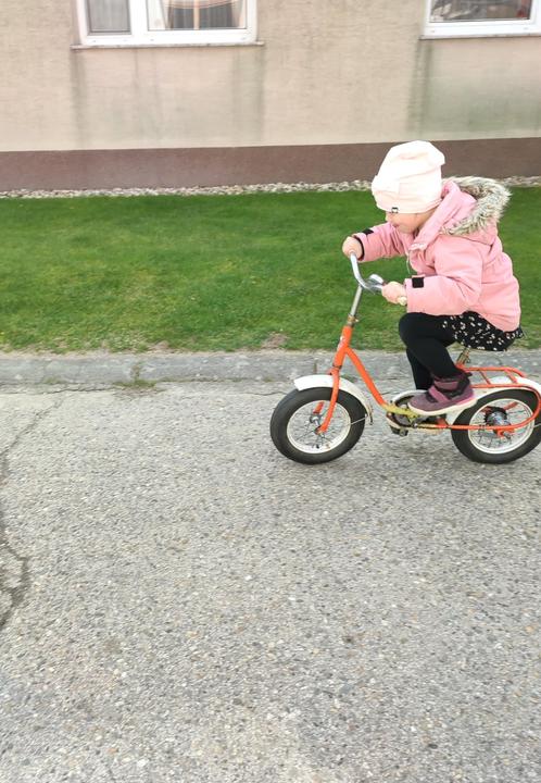 Aj takto sa dá naučiť bicyklovať 😅. Počas prázdnin u babky moja mama vytiahla môj (skoro 40-ročný bicyklík), že nech sa moja malá na ňom učí jazdiť. Len už mal poškodené pomocné kolieska. Mama sa pustila do opravy. Išla som ich pozrieť a vidím, že zatiaľ, čo sa moja mama tam namáhala so šróbovakmi, moja dcérka už nevydržala čakať a zrazu len vidíme, že si veselo jazdila na dvore ako by sa nechumelilo 😂.