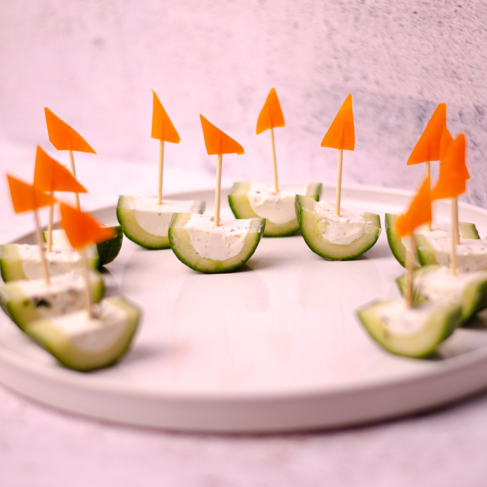 Jemný krémovitý syr je dochutený soľou, čiernym korením, posekanou pažítkou aj petržlenovou vňaťou a trochou sušeného cesnaku. Vlajky sú z papriky.