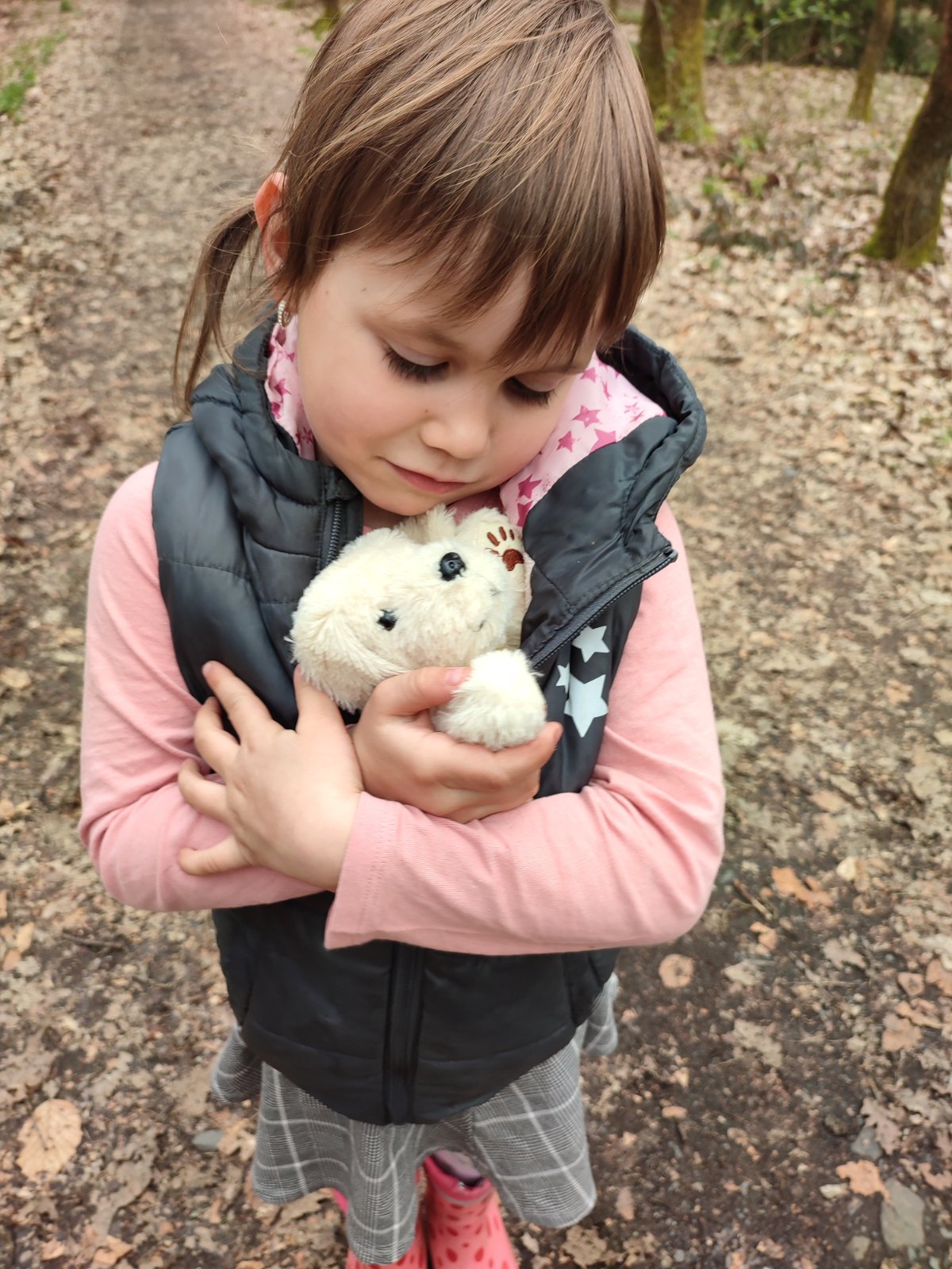 Aj vaše dievčatá nosia všade zo sebou plyšáka? Moja zuzka sa bez svojích havinkov, jednodoržcov, koníkov a inych milacikov ani nepohne. Vždy ich šikovne prepašuje, aspoň jedného niekedy aj 2 zvládne. Dnes schovala nenápadne do vesty, až keď sme sa čudovali, prečo jej narástlo brucho, vykukol tento fešák 😅