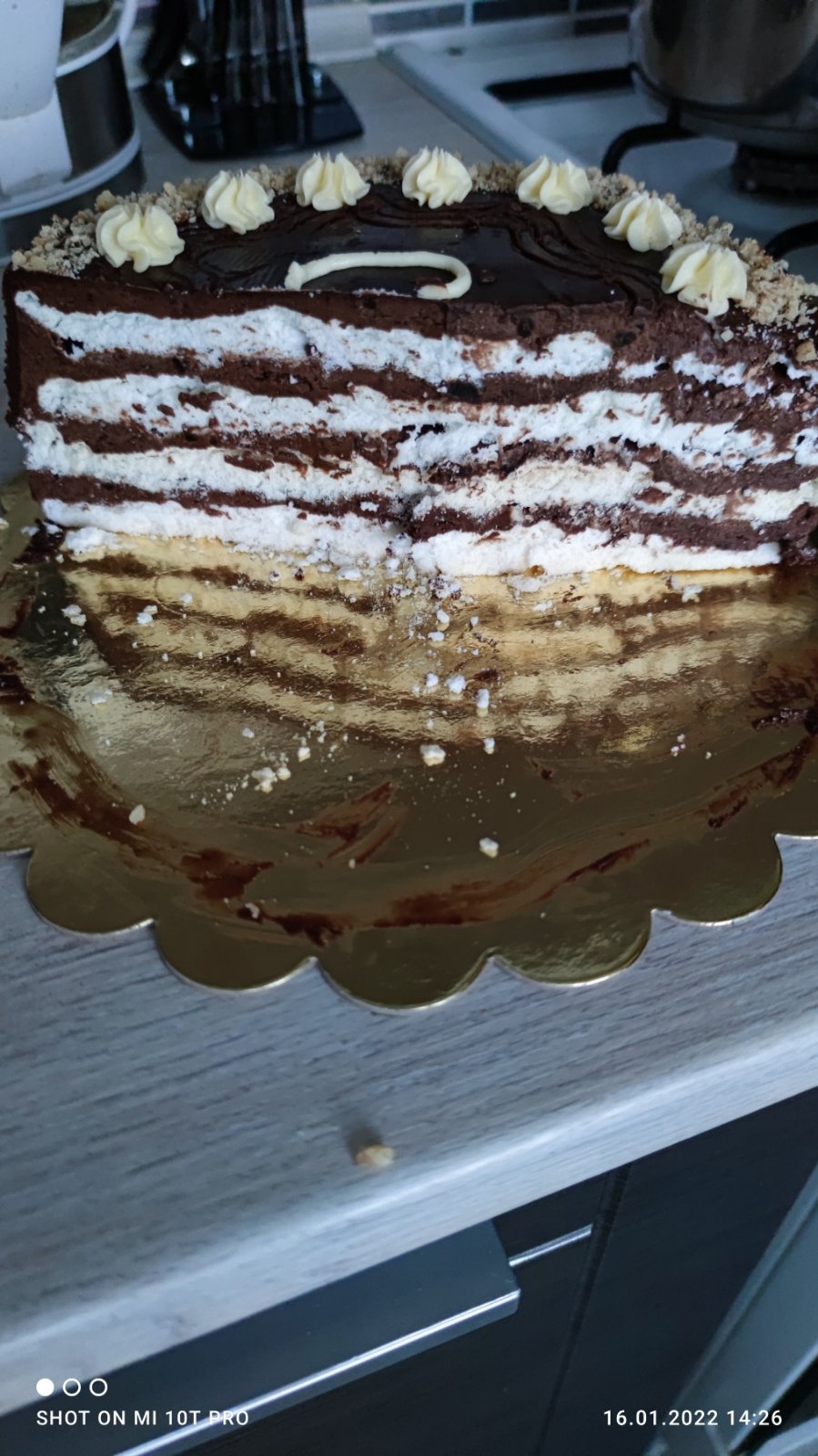 A ta torta s klasickym kakovym korpusom mala vzdy jednu vrstvu penovu. Taku tortu som odvtedy nevidela, mozno to bol jej vymysel🙂