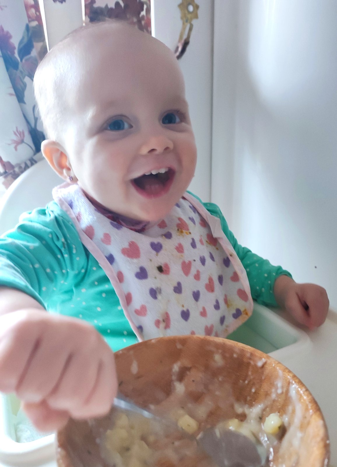 Tomu sa hovorí nadšenie pri jedení 😄. Drobotinka sa aktuálne absútne odmieta dať kŕmiť, ona len sama papá🙈.. Pamätáte si toto obdobie?