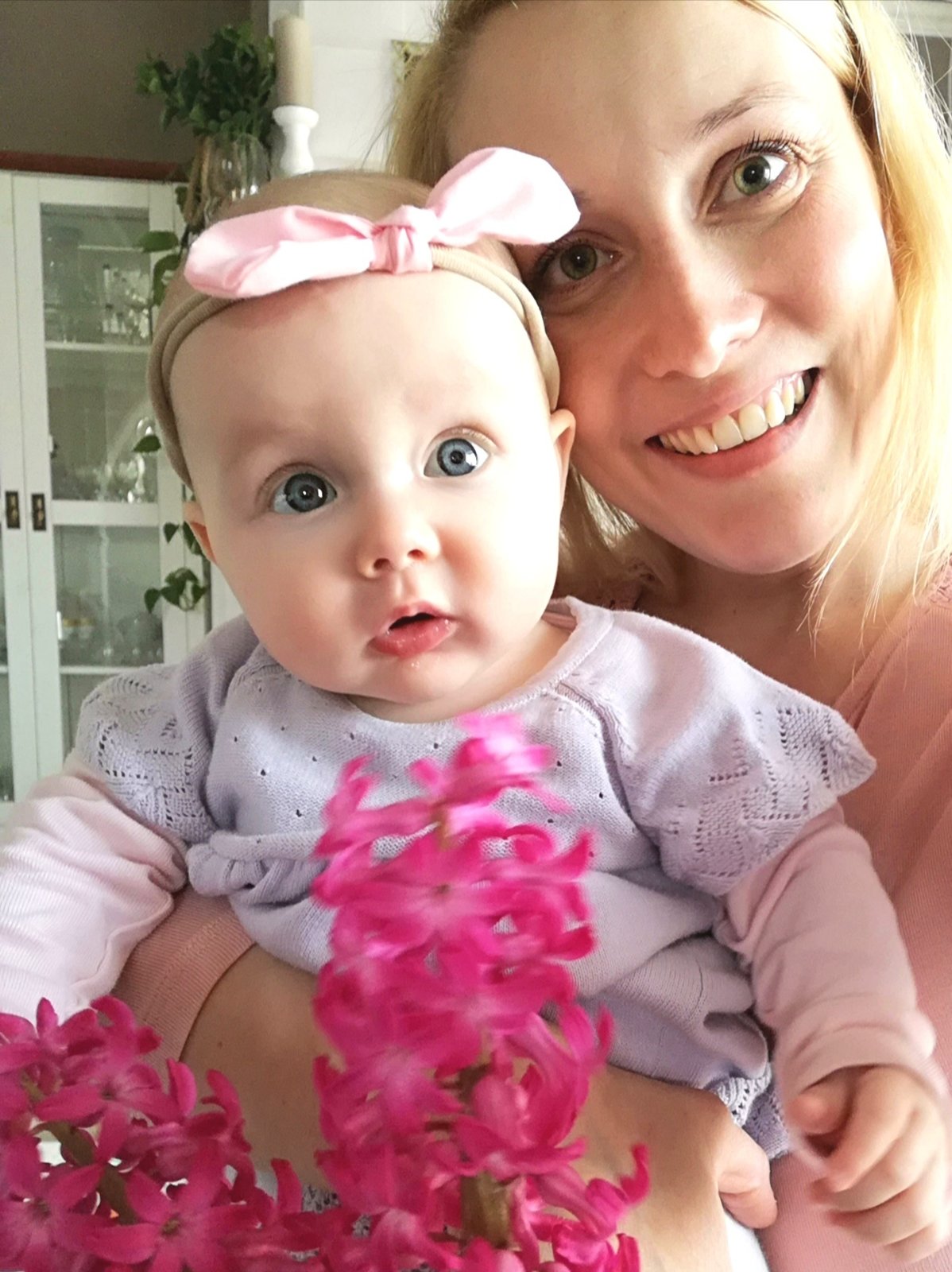 Drobotinka skúmala dnes kvietky v byte, hlavne tento hyacint jej učaroval 😊. Vonku u nás konečne mizne sneh ale príroda sa ešte nezotavila, tak si kvety zatiaľ len vnútri vychutnáme.
