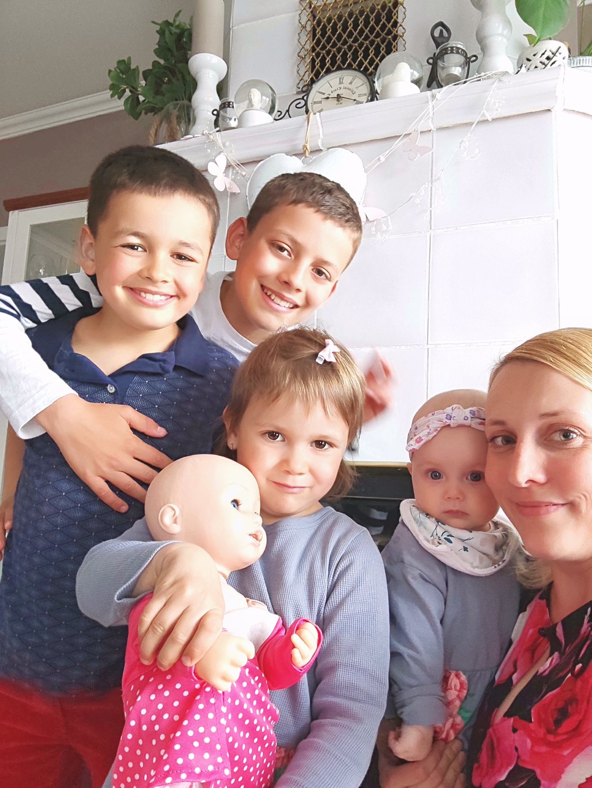Len skutočne málokedy sa mi podarí zohnať všetky deti na spoločnú fotku. Pozerám ja, pozerám, že však ja len 4 deti mám a potom vidím, že dcérkina bábika sa k nám tiež pridala..celkom zapadla 😅