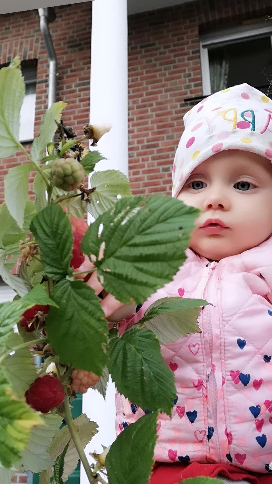 Našli sme v záhrade malinky, to bolo radosti 😍..