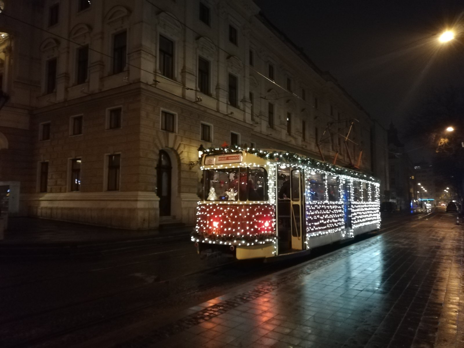 Počuli ste už o vianočnej električke čo premáva v Bratislave? Doteraz som o nej len z rozprávania počula a včera konečne aj na vlastné oči zahliadla. Vnútri bola tiež parádne ozdobená.