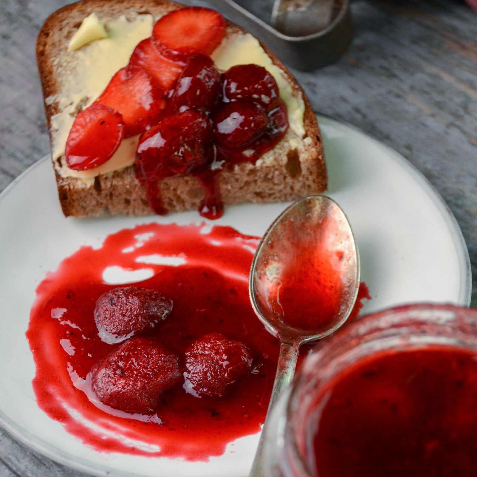 Posledné jahody zo záhradky spracované do marmelády na raňajky.