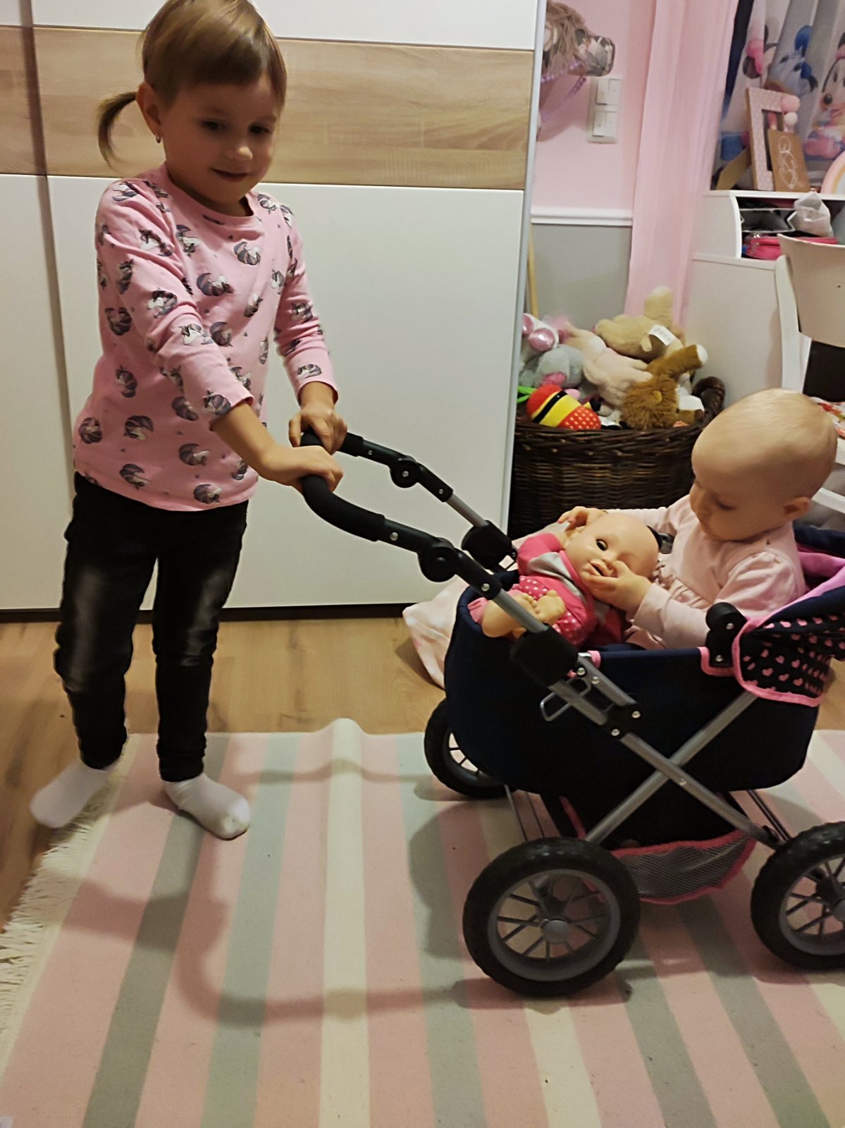 Toto ma dnes pobavilo, dievčatá sa hrali v izbe, zrazu tam bolo podozrivo ticho, takže rýchla kontrola. Keď som vošla dnu zistila som, že zuzka svoju sestričku použila ako živú bábiku a natlačila ju to kočíku pre bábiky a pekne kočíkovala po izbe. A malá drobotinka celá blažená tam sedela ako pena 😂