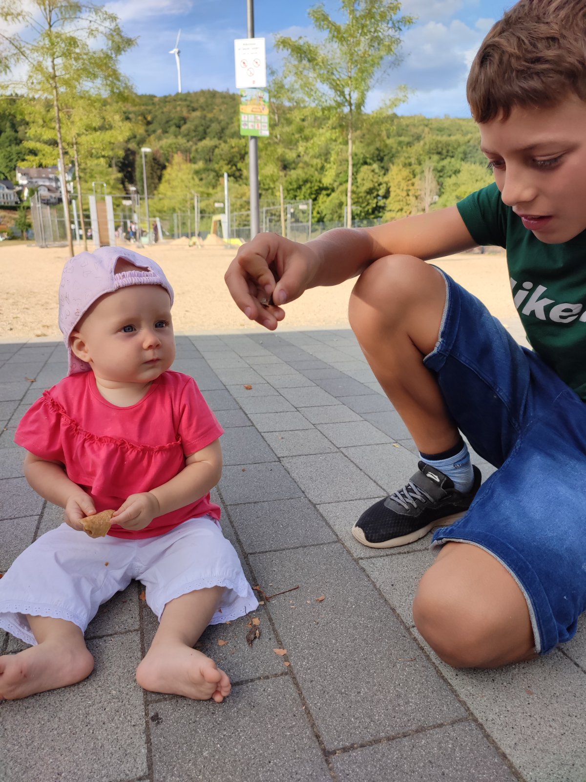 Jedna z výhod mať pre dieťa o dosť staršieho súrodenca? Aspoň raz za deň si môžem dopriať kávu bez toho aby som sa stále musela obzerať kdo okolo môže utrpieť popáleniny keď okolo mňa prebehne 😄